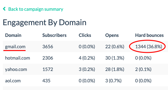 This means that if you had been sending emails to Gmail addresses during the outage you likely had a high bounce rate for your Gmail addresses and possibly your campaigns and accounts overall. Since BigMailer pauses campaigns with high bounce rate you may have received notifications about your campaigns being paused due to high bounce rate.